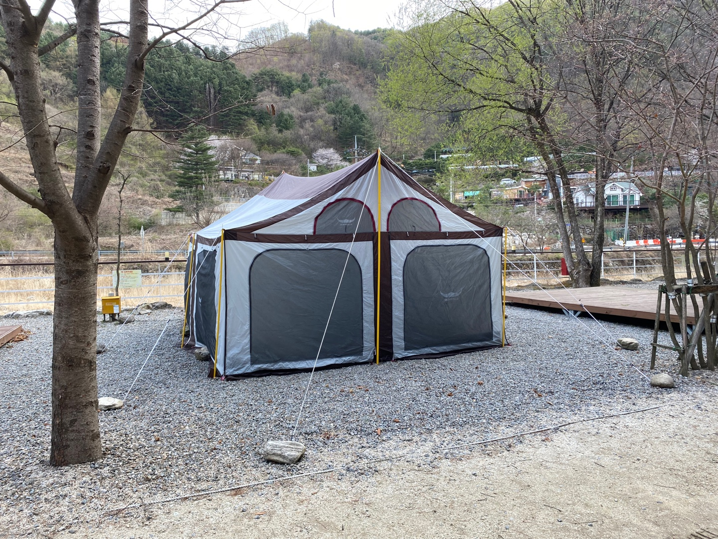 경기 가평군 북면 화악산로 943-50 네스트캠핑 안녕하세요 :) 캠핑에 빠져 캠린이가 캠핑용품 진탕사고 방문한 가평에 위치한 '네스트캠핑' 이틀 동안 비 와서 갈 수 있을까 했지만 운 좋게 가는날은 비가 그친다는 희소식!! 방문 후기 바로 시작해볼게용 '네스트캠핑장' 구조예요! 데크랑 파쇄석뿐만 아니라 펜션도 같이 운영하고 있어요 '네스트캠핑장' 카페 가입하면 볼 수 있어요 매너타임 / 입&퇴실 시간 / 기준인원 / 반려동물 동반 등 자세하게 나와있어요 필독!! 꼭 확인하세요! 저희가 이용한 데크 13번! 바로 뒤 쪽으로 계곡이 쫘~악 있어요 여름에 오면 진짜 엄청 좋겠다,, 계곡에서 물놀이하고 바로 고기 구워 먹고,, 캠핑용품 거의 다 샀는데 타프는 구매 전이라 어머님이 예전에 쓰시던 타프쉘 빌렸어요..